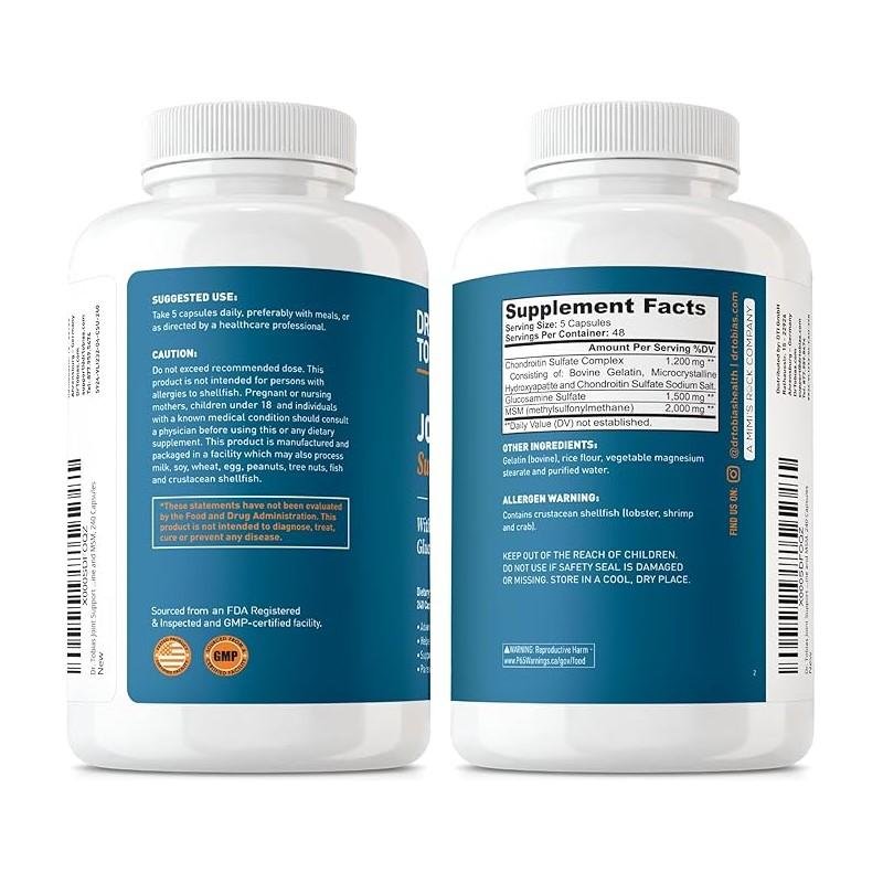 Dr. Tobias Joint Support is a complete formula crafted to support joint flexibility, mobility, and comfort. It combines clinically studied ingredients such as glucosamine, chondroitin, MSM, and turmeric, along with supportive herbs and nutrients, to help maintain healthy cartilage, reduce stiffness, and support long-term joint function. This supplement is designed for athletes, active individuals, and those experiencing age-related joint concerns.