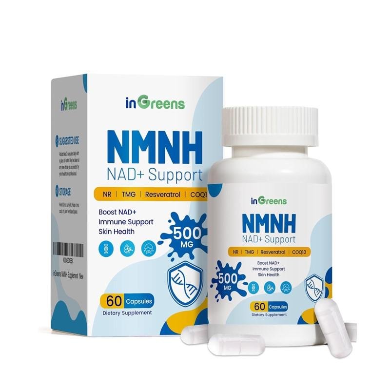 In Greens NMNH NAD+ Support is a premium dietary supplement designed to naturally boost your body’s NAD+ levels—a key molecule essential for energy production, cellular repair, and healthy aging. Each serving provides a potent 500 mg blend of NMNH, NR, TMG, resveratrol, and CoQ10 to support cellular energy, immune function, and skin vitality. This advanced formula helps combat fatigue, enhance mitochondrial health, and promote youthful energy and radiance from within.