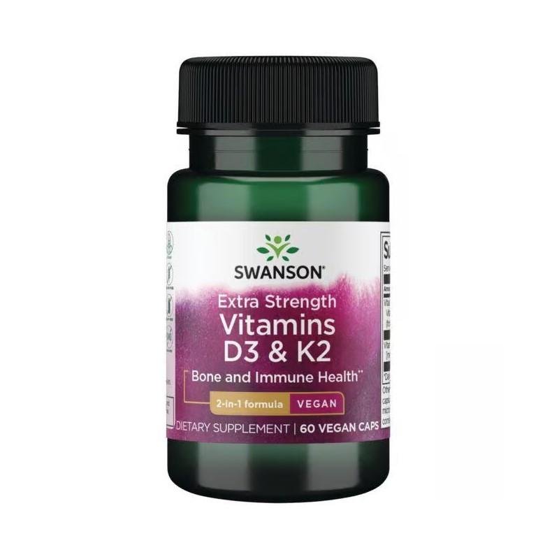 Swanson Extra Strength Vitamins D3 & K2 combines two essential nutrients in a 2-in-1 formula designed to support bone strength and immune health. Vitamin D3 helps with calcium absorption, while vitamin K2 aids in directing calcium to bones and supporting cardiovascular health. This vegan-friendly supplement is ideal for daily nutritional support.