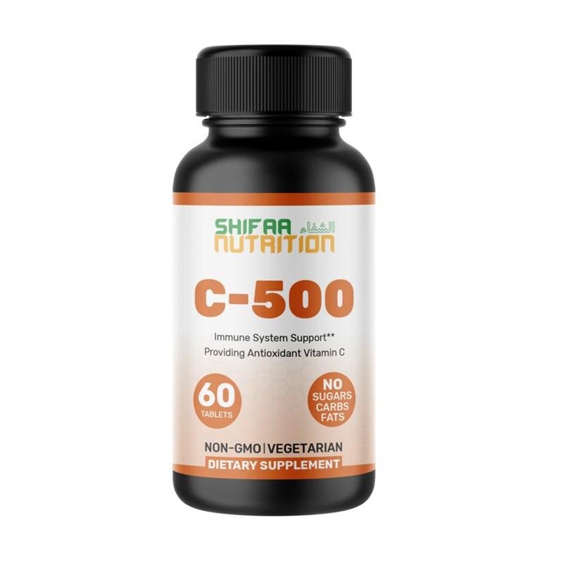 SHIFAA الشفاء C-500 is a premium vitamin C supplement formulated tosupport immune health, enhance antioxidant protection, and promote overall wellness. Each tablet provides 500 mg of pure vitamin C, helping to strengthen the body’s natural defenses and protect cells from oxidative stress. Ideal for everyday use, this vegetarian, non-GMO, and sugar-free formula supports skin health, collagen formation, and immune resilience for daily vitality.