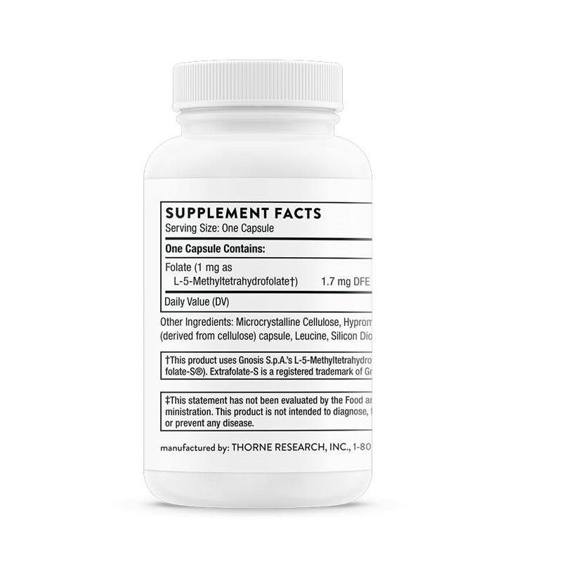 Thorne 5-MTHF 1 mg provides the most bioactive and natural form of folate (vitamin B9)—5-Methyltetrahydrofolate (5-MTHF)—for superior absorption and effectiveness compared to synthetic folic acid.