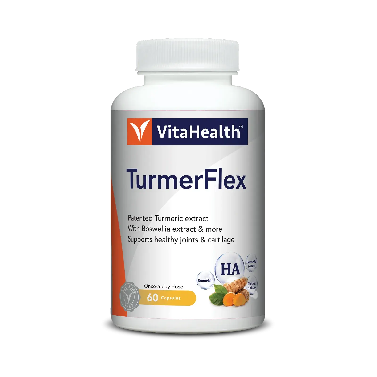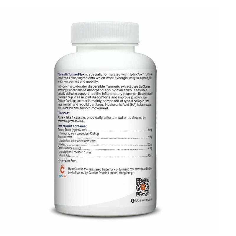 VitaHealth TurmerFlex is a powerful joint support formula crafted with patented turmeric extract, Boswellia extract, bromelain, and chicken cartilage to promote healthy joints, flexibility, and cartilage function. This once-a-day supplement is designed to ease joint stiffness, support mobility, and provide antioxidant benefits for long-term joint comfort and strength. Ideal for daily use, TurmerFlex helps maintain an active and pain-free lifestyle naturally.